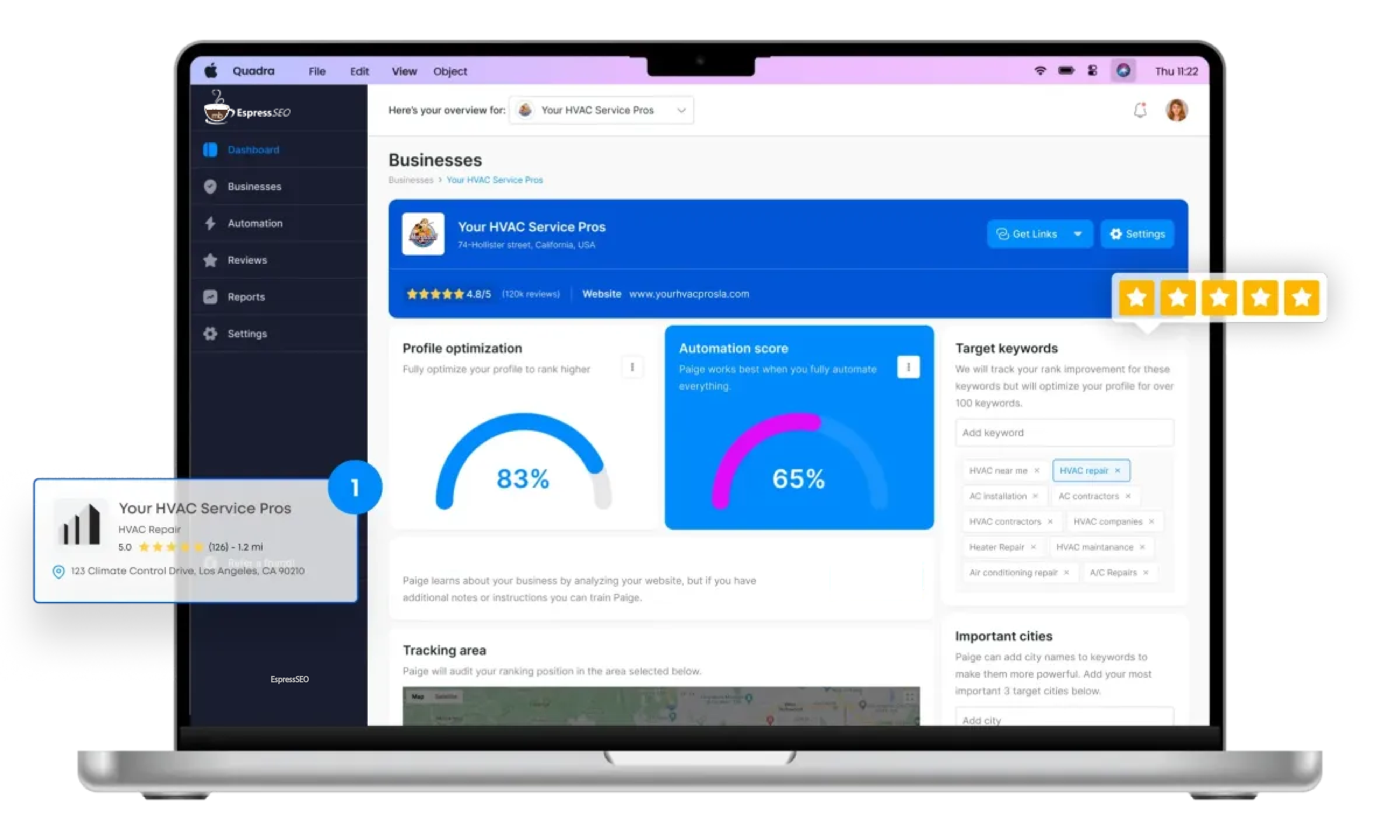 EspressSEO handles every aspect of your Google Business Profile optimization automatically—no manual work required.